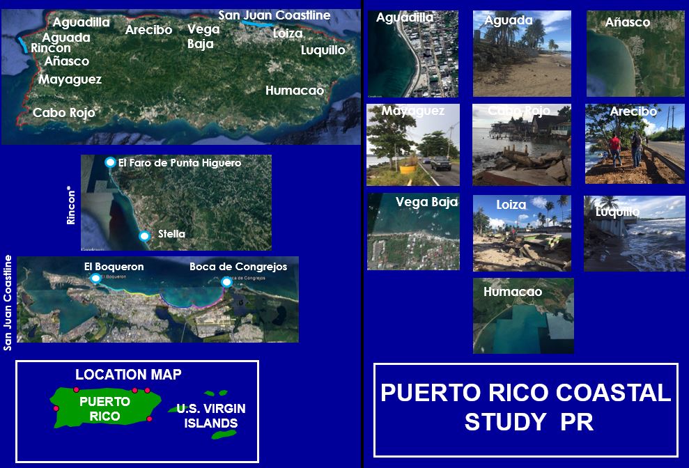 The Puerto Rico Coastal Storm Risk Management (CSRM) study will extensively leverage the NACCS lessons learned, tools, and processes to ultimately produce a comprehensive and consistent understanding of coastal vulnerability along the selected reaches of the Commonwealth of Puerto Rico Coastline. Puerto Rico and the four main offshore islands of Vieques, Culebra, Mona, and Desecheo have a total length of 620 miles of coastline. Most of the Commonwealth’s population of 2.6 million people live within coastal municipalities and the vast majority of critical infrastructure investments such as hospitals, schools, power plants, government buildings, as well as over 8,000 miles of roads are located near the coast. A proactive approach is key to potentially minimize or even avoid impacts of both extreme and minor events in the future. The study area has suffered extensive damage from multiple tropical and extratropical storms to include Hurricane Hugo (1989), Hurricane Luis (1995), Hurricane George (1998), Nor’easter (2008), with the most recent Hurricanes being Irma and Maria (2017) and Nor’easter (2018). Hurricanes on average hit Puerto Rico about once every three years and strong Nor’easters hit every 10 years. In addition to regional analyses of coastal vulnerability, the strategy will identify initial measures/costs that can address vulnerabilities with emphasis on regional sediment management (RSM) as an actionable strategy to sustainably maintain or enhance current levels of storm protection within existing authorities.